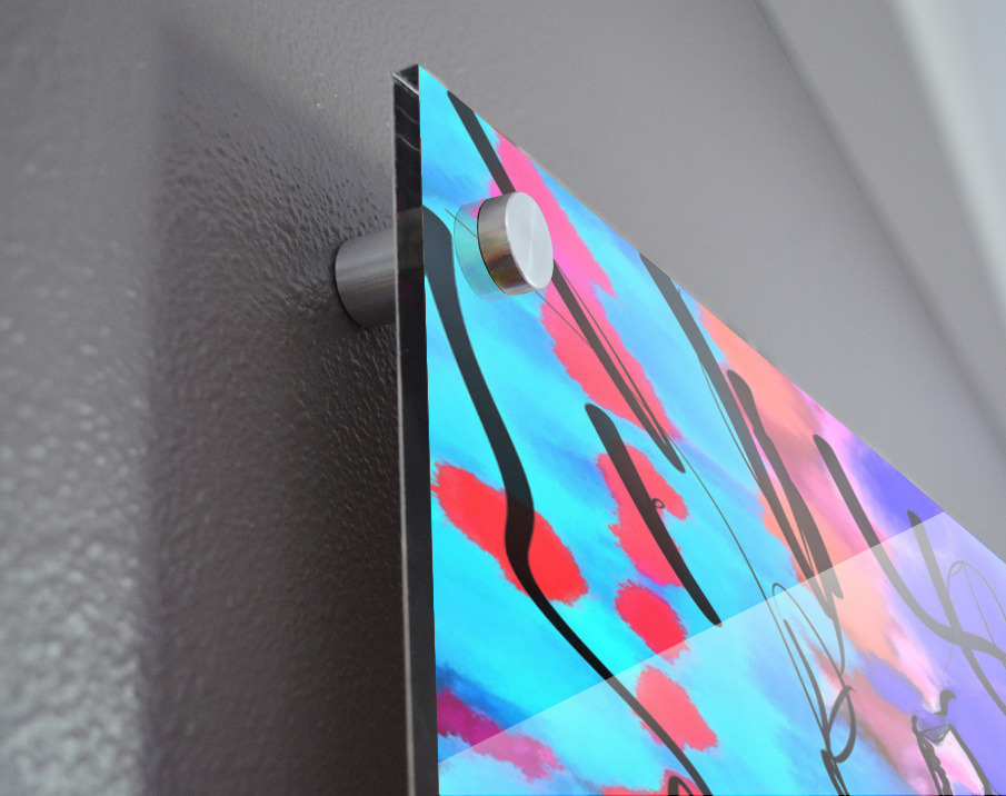 Impression sur acrylique avec entretoises ( cylindres métalliques )