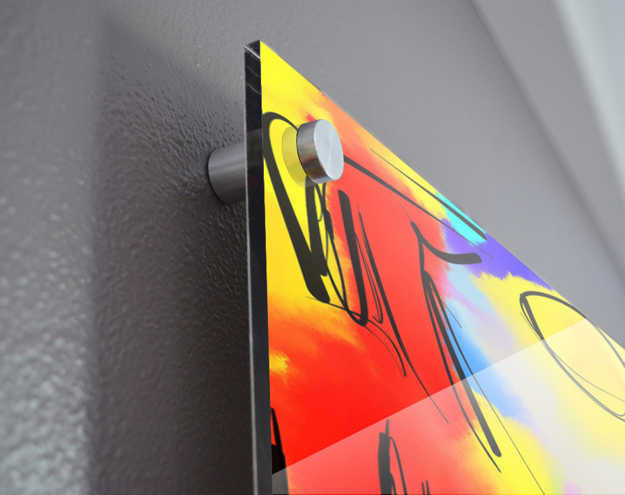 Impression sur acrylique avec entretoises ( cylindres métalliques )