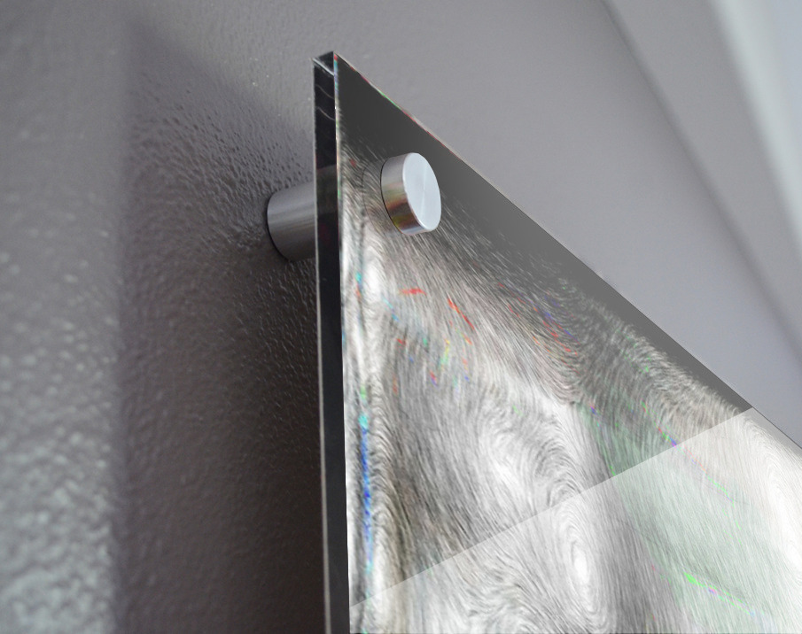 Impression sur acrylique avec entretoises ( cylindres métalliques )